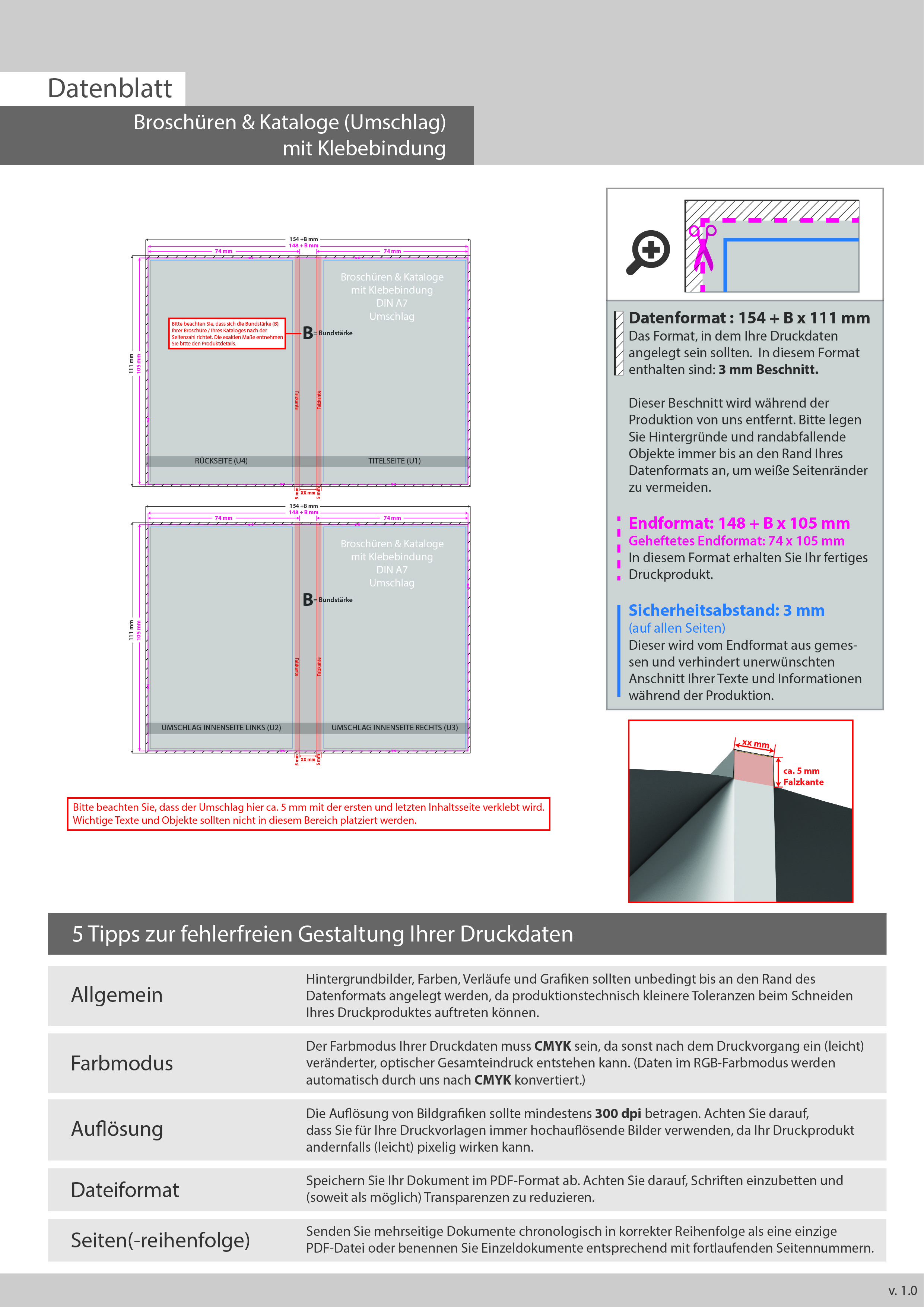 Broschüre mit PUR-Klebebindung, Endformat DIN A7, 100-seitig